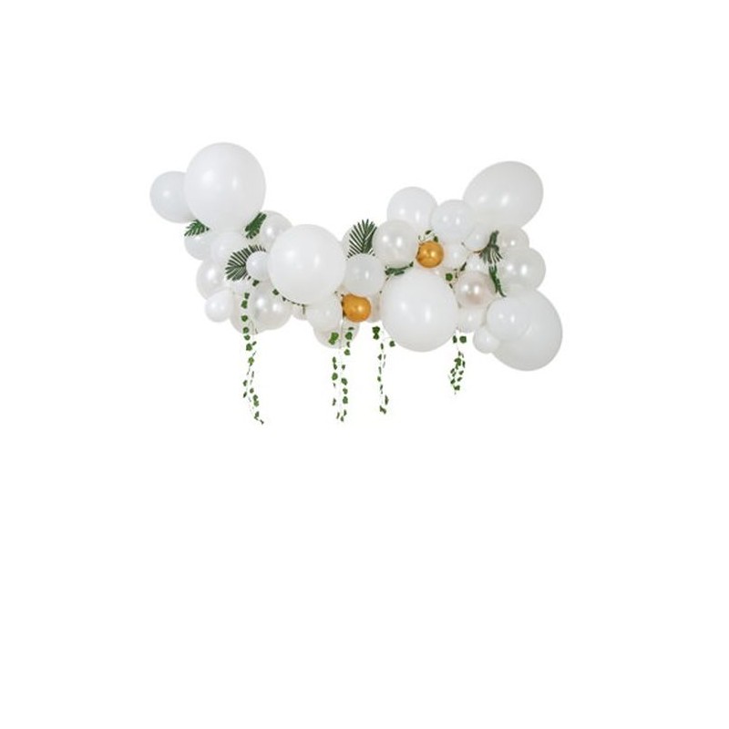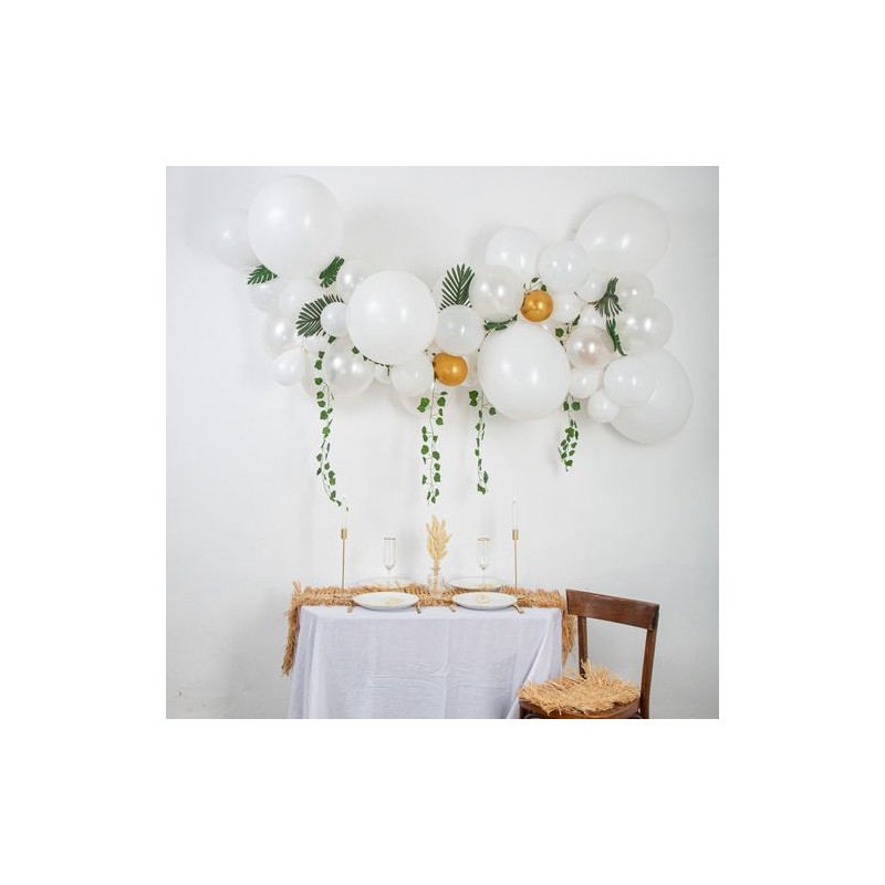 Contient : Ballons Blanc, Or, Feuilles tropicales et Lierre